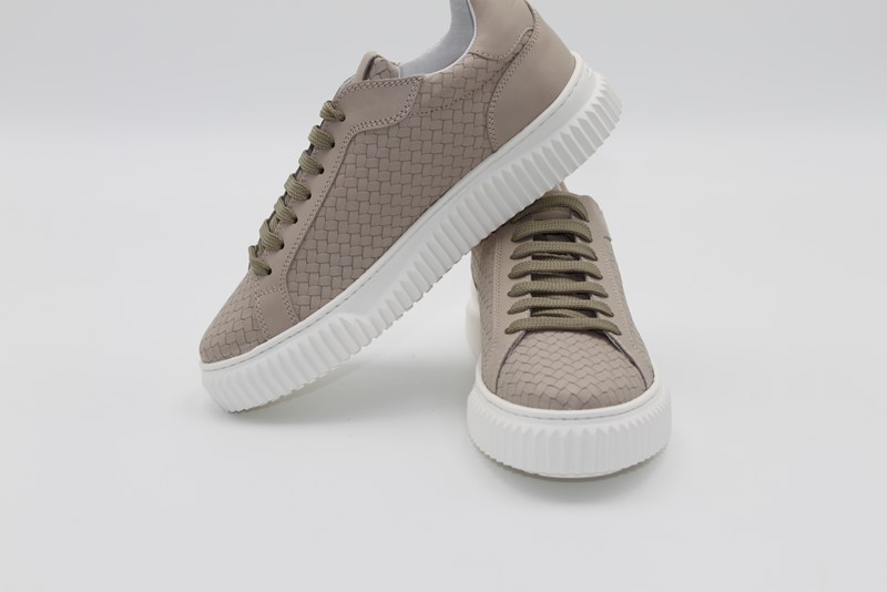 LIPARI WOVEN Sneakers in pelle Tortora Sneaker in nappa intrecciata con suola a cassetta e bordo zigrinato. Nuance eleganti e una lavorazione preziosa definiscono questa nuova versione dell’iconica Lipari. Realizzata in morbida nappa, affronta la bella stagione con tutta la raffinatezza delle linee pulite e con il gioco di zigrinature alte sulla suola in gomma. Codice articolo: 2017533050E01 Chiusura: Lacci Suola: Gomma Soletta: Pelle Materiale Interno: Pelle Materiale Esterno: Pelle