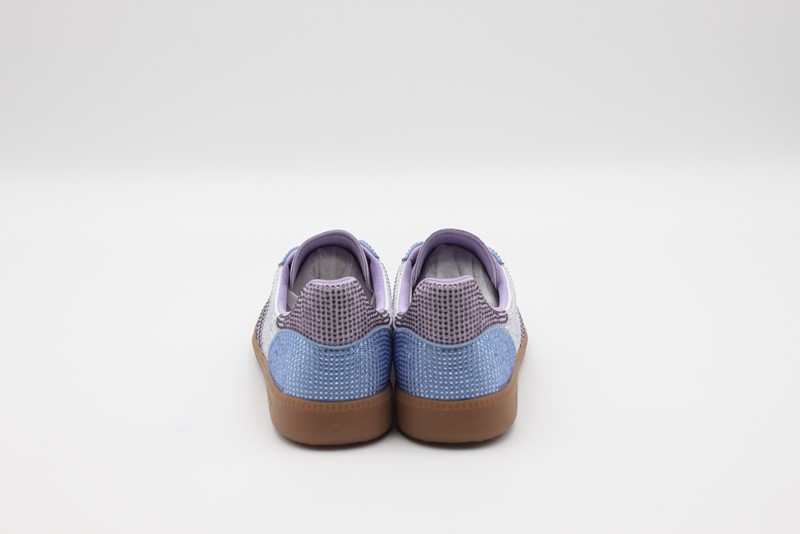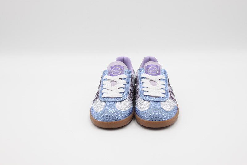 Tomaia in morbida pelle con strass multicolori per un tocco femminile.