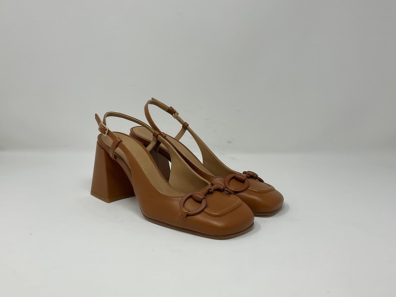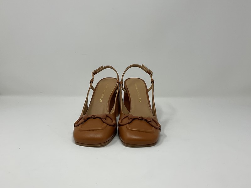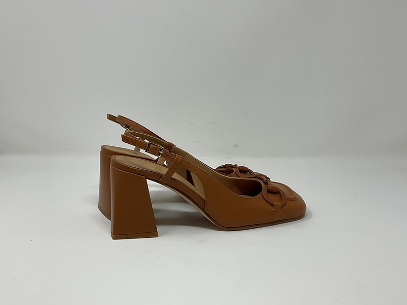 Chanel in pelle con cinturino regolabile. Tacco in pelle rivestito H70. Morsetto in tinta sulla tomaia. Made in Italy