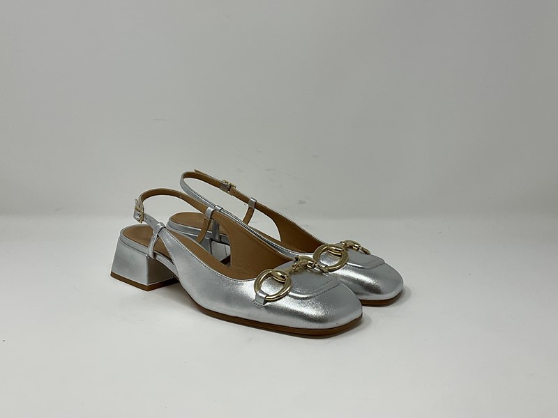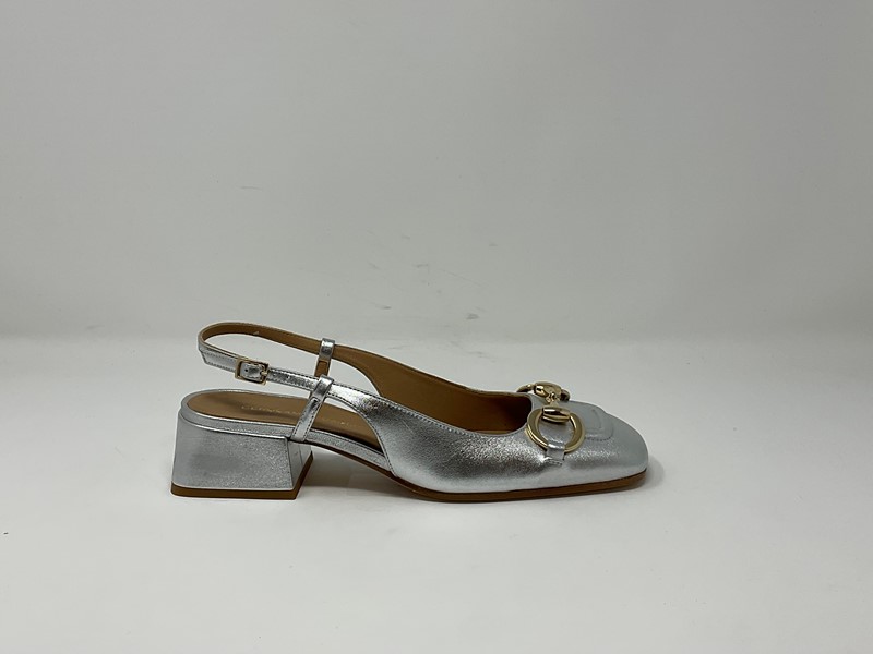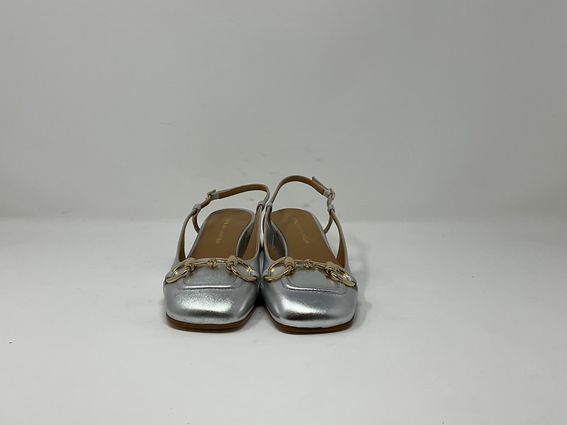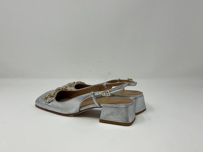 Chanel in pelle laminata , morsetto metallico a contrasto Tacco rivestito in pelle, H. Tacco 40 Made in Italy