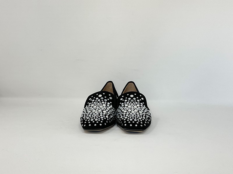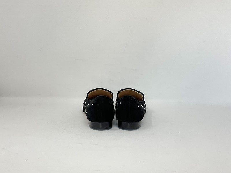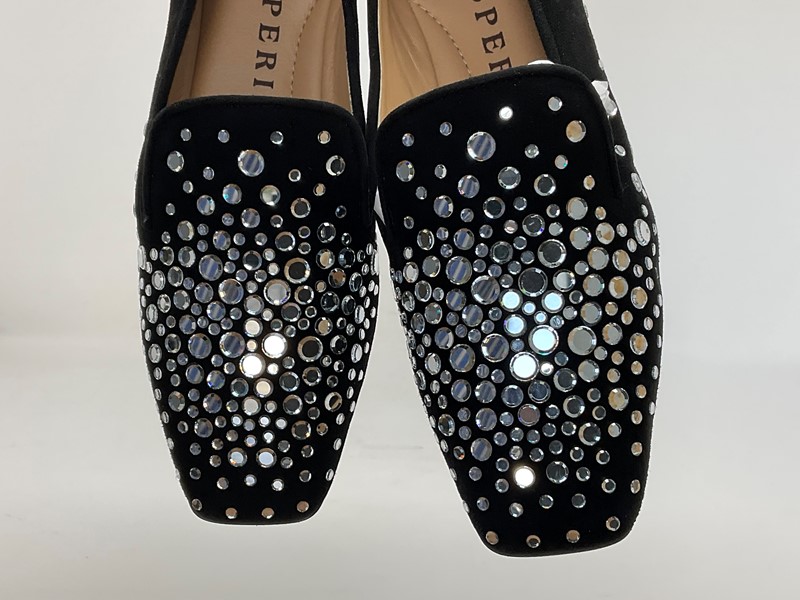 Loufer in camoscio Colore Nero, Strass Srgento H. tacco 1 cm. Made in Italty
