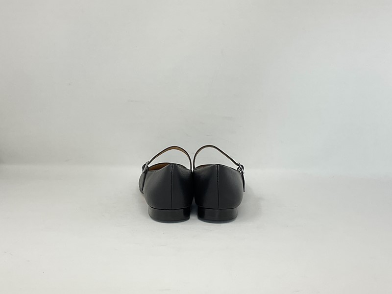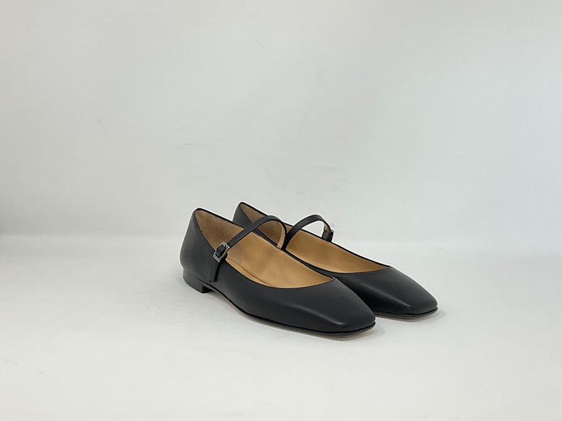 Ballerina in pelle con cinturino regolabile. Scollo rotondo punta quadra H. tacco 1 cm. Colore Nero La lavorazione a sacchetto dona alla scarpa il massimo comfort e flessibilità per una calzata ancora più confortevole. Made in Italy