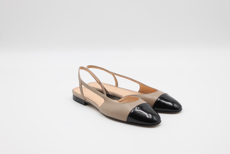Flat nappa e vernice Suola in cuoio Colore Sand/Nero Made in Italy