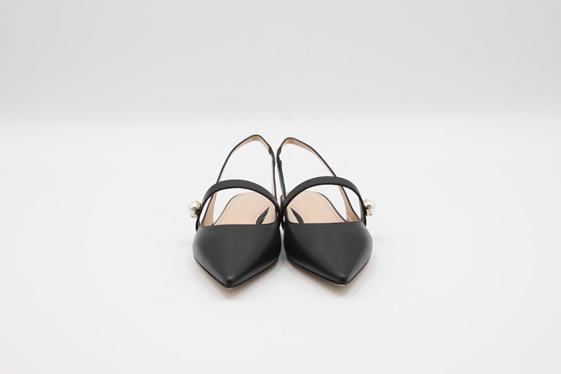 Slingback in pelle con cinturino chiuso da un bottone perla cinturino con elastico Fondo cuoio Colore Nero Made in Italy