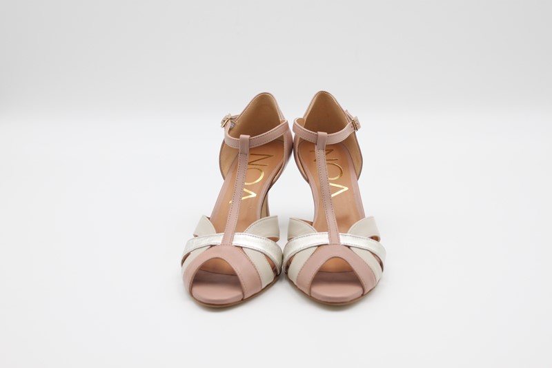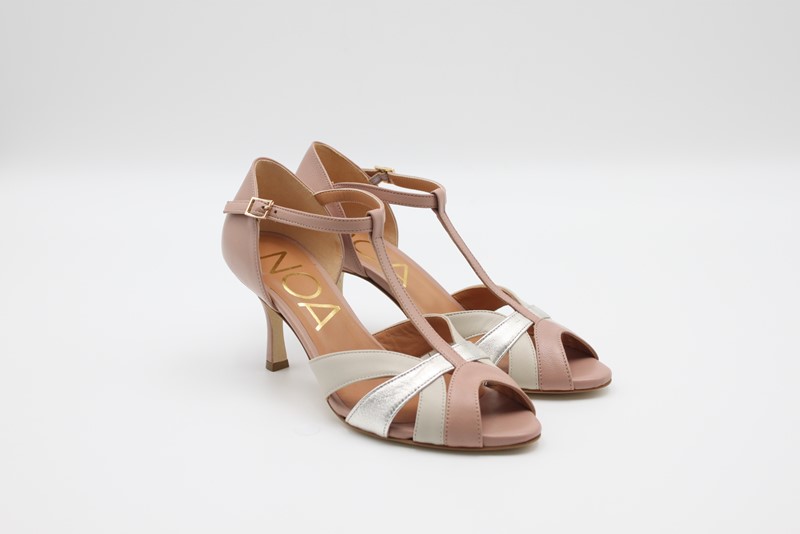 Scarpa tango in pelle. Cinturino regolabile alla caviglia Colore Nude/mikl/platino Made in Italy