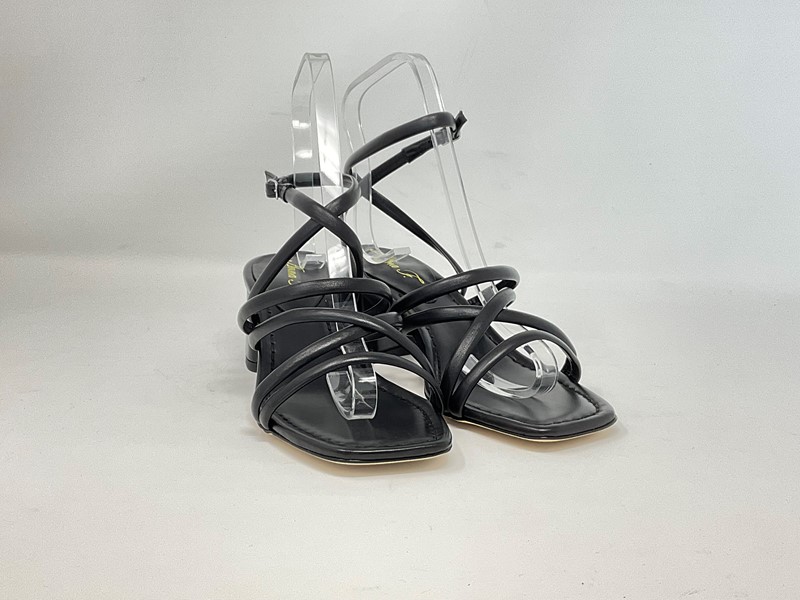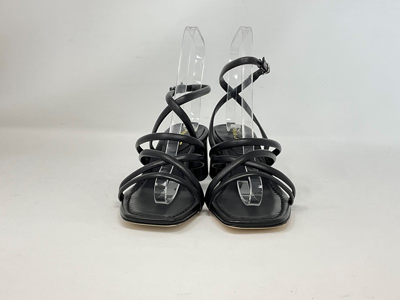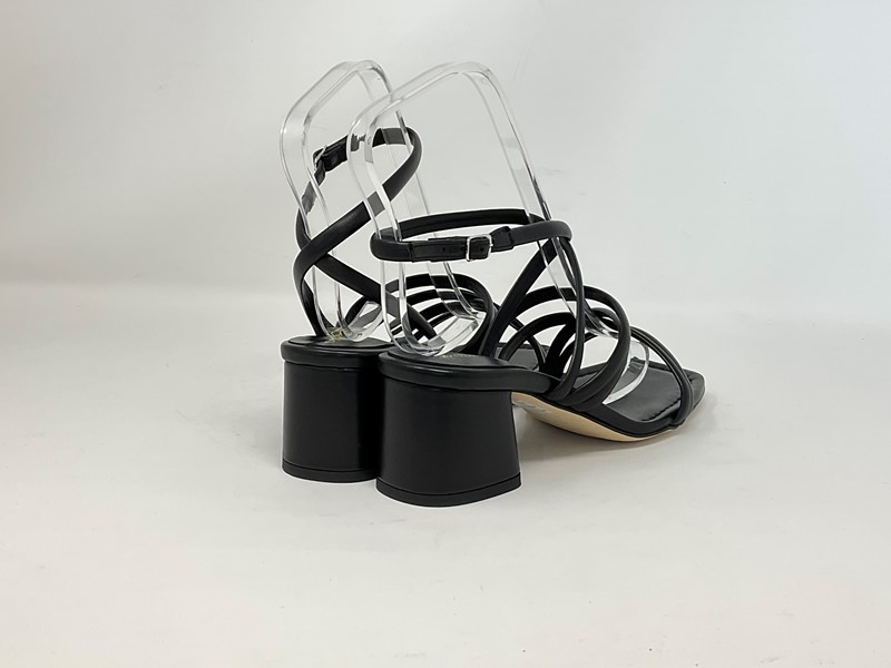 Sandalo in pelle con cinturino regolabile alla caviglia, i lacci sono in tubolare per assicurare confort nella calzata Colore Nero Tacco in pelle rivestisto H. tacco 5,5 cm Made in Italy