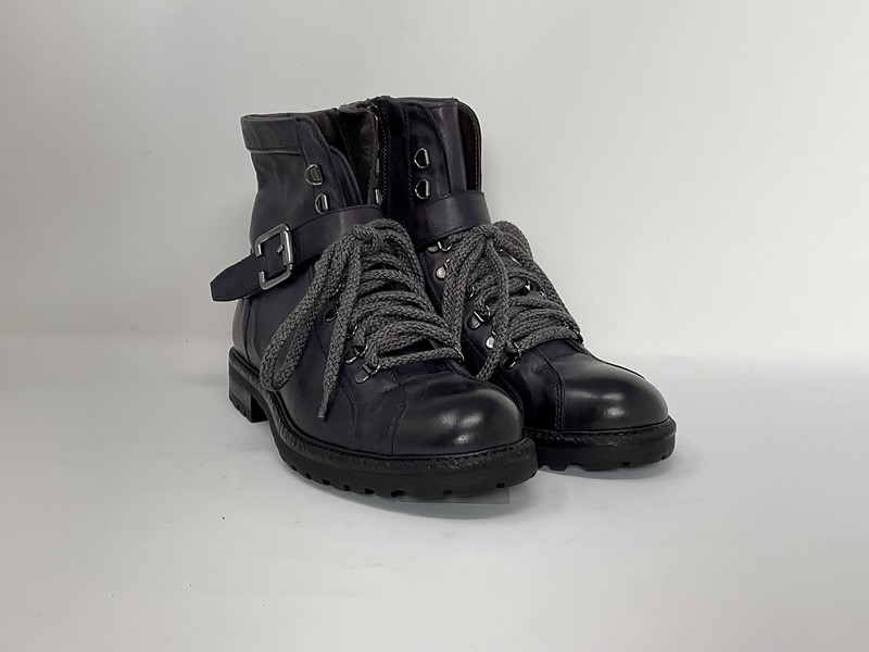 Pedula con zip e fibbia Colore Blu Stinghe in lana Suola in gomma Made in Italy