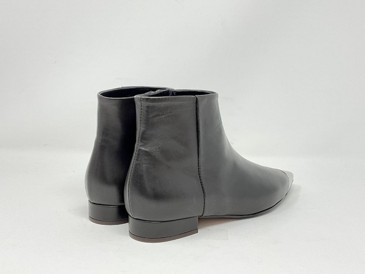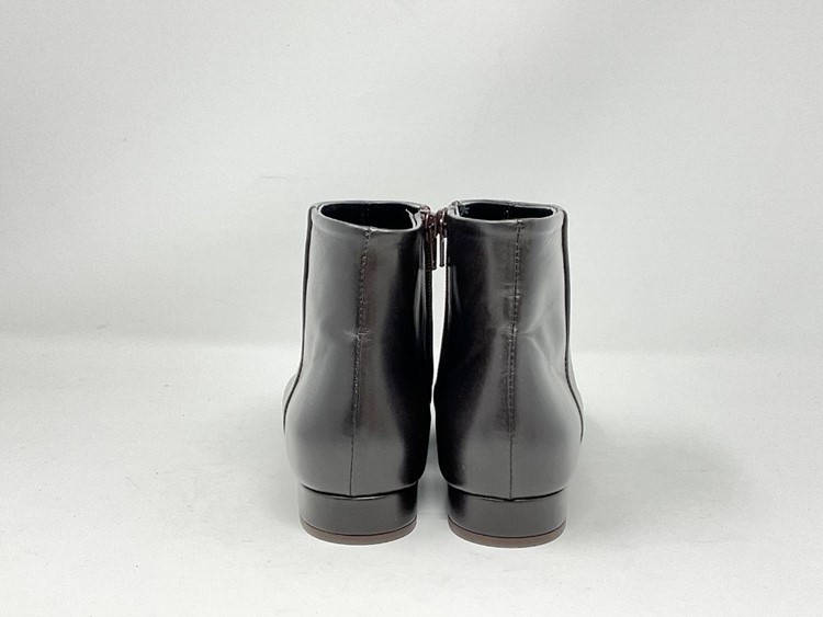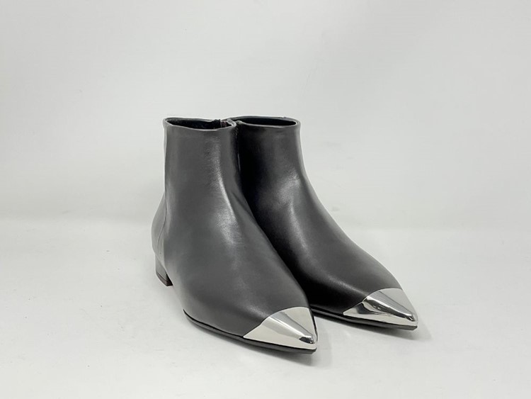 Boot in pelle con cercniera interna,accessorio in acciaio sul puntale Colore Testa di Moro. Tacco riestito in pelle H. 2 La scarpa fotografata è un 37 Made in italy