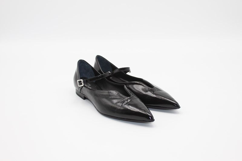 Ballerina in vernice, con cinturino regolabile alla caviglia Colore Nero H. tacco 1 cm Made in Italy