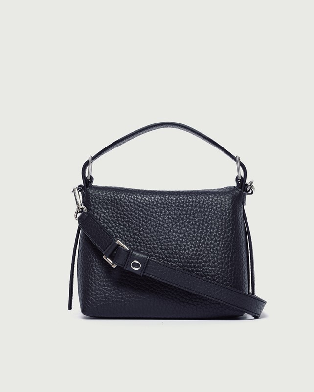 B02175–_SOF-SOF20WNER Dimensioni: Larghezza: 20 cm / Altezza: 16 cm / Profondità: 10 cm Tasche: un taschino interno Chiusura: con patta e bottoni magnetici Funzionalità: manico a mano e a spalla regolabile con fibbia, tracolla regolabile removibile Dettagli: finitura palladio pelle martellata Made in Italy