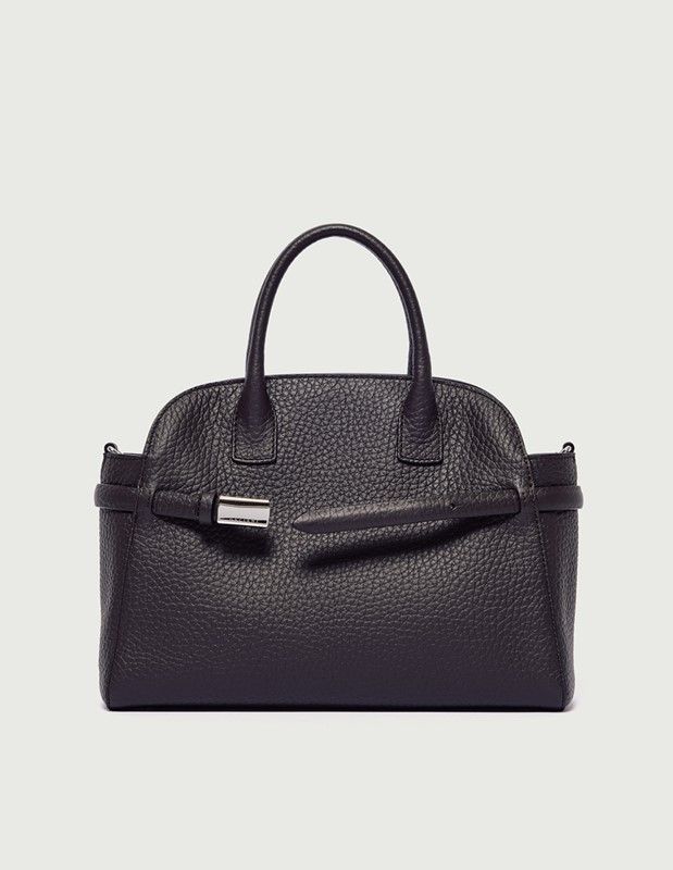 Aura è una borsa dalla costruzione estremamente contemporanea e una silhouette essenziale ma in movimento. Aura Soft Midi è una borsa a mano adatta ad accompagnare ogni donna in ogni momento della giornata, morbida e capace. Dimensioni: Larghezza: 30 cm / Altezza: 24 cm / Profondità: 11 cm Tasche: 1 esterna 3 interne, di cui una con zip Chiusura: con bottoni magnetici Funzionalità: manici a mano, tracolla aggiuntiva regolabile Materiale: pelle martellata Dettagli: metallerie finitura palladio Made in Italy