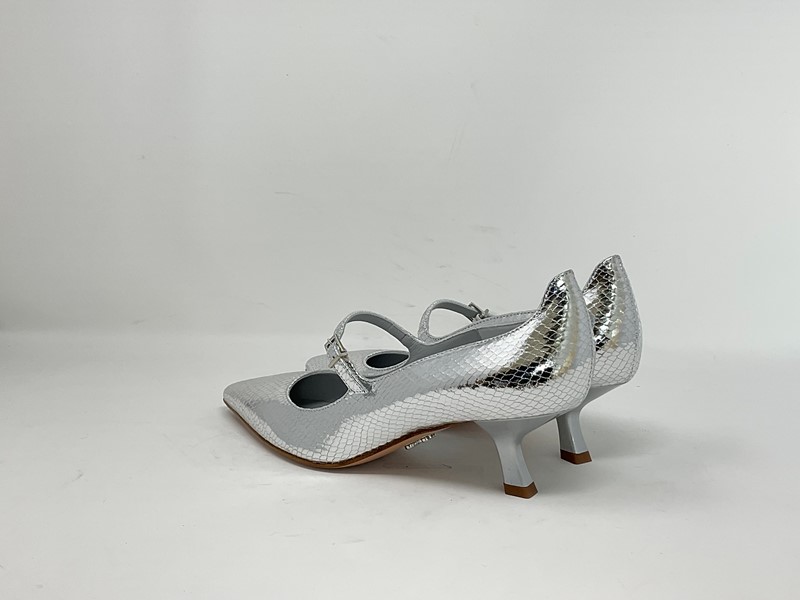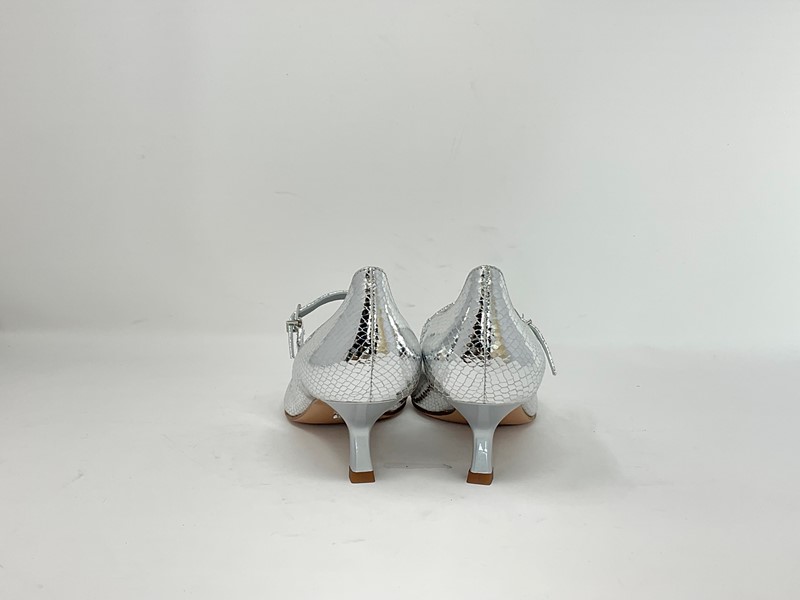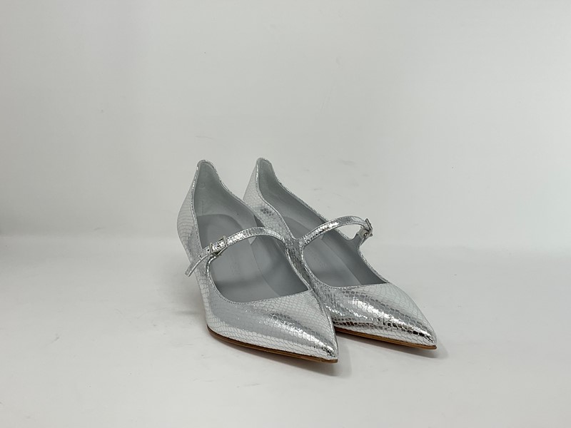 Mary Jane in Vips con cinturino regolabile sul collo del piede. Colore Argento H tacco 50 Made in Italy