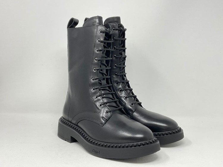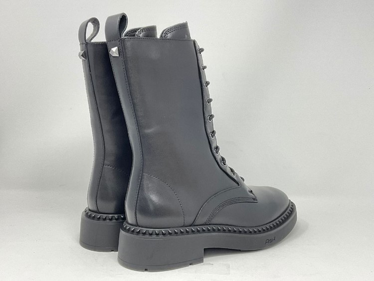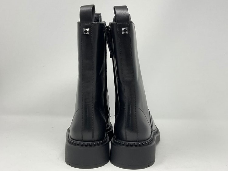 Biker in pelle stringato con zip interna Suola carroarmato con borchie H. tacco 3,5 H. suola 2 Colore Nero