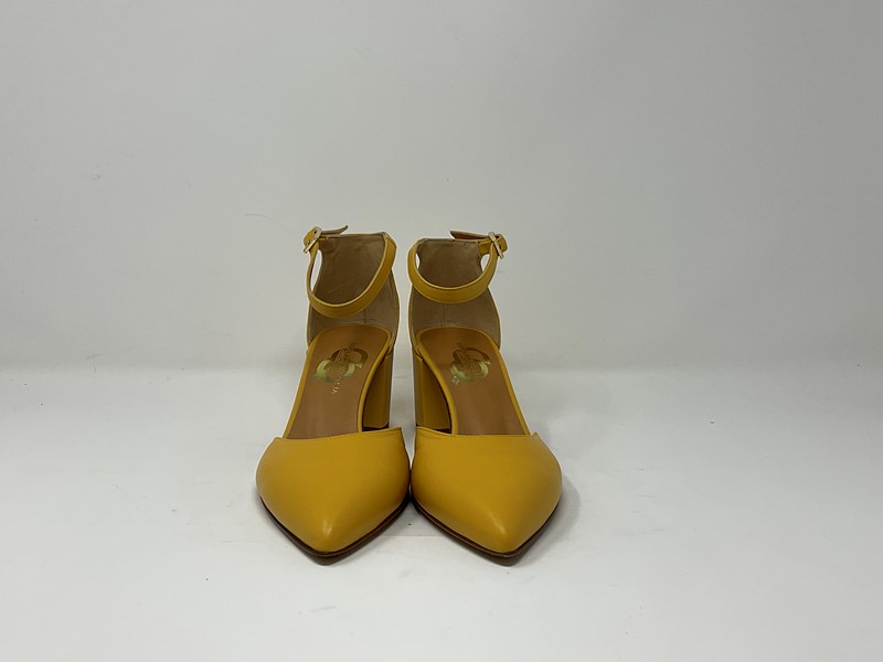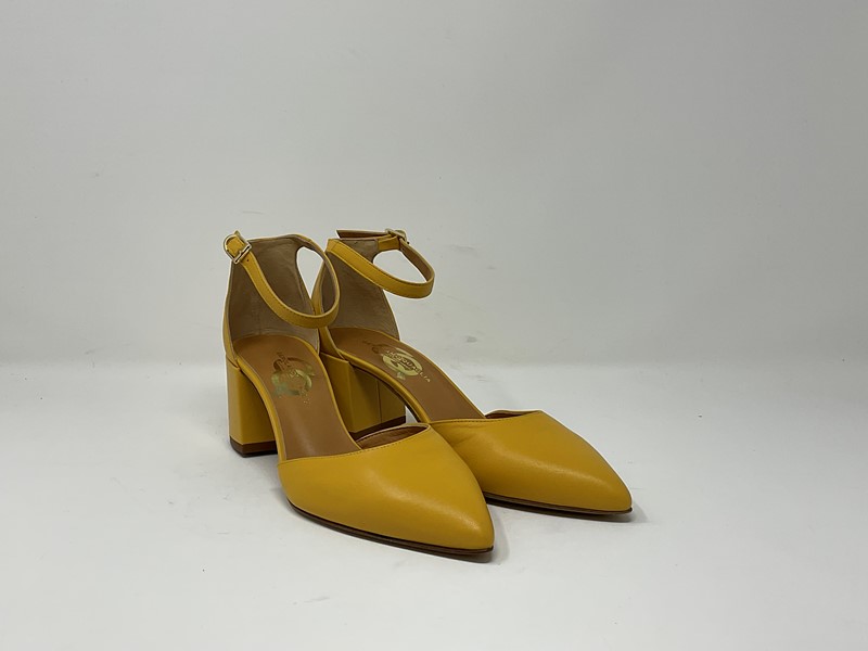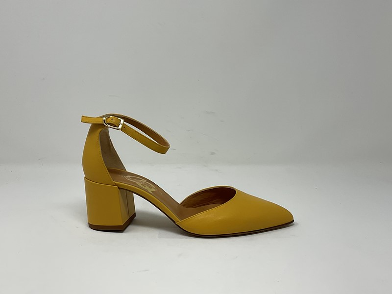 Scarpa in pelle con cinturino alla caviglia ,tallone chiuso H.tacco 6 cm.