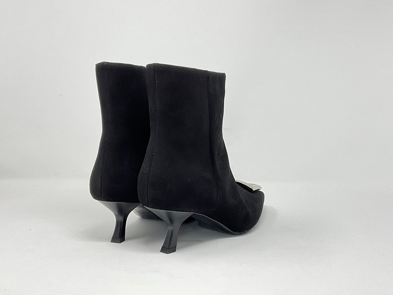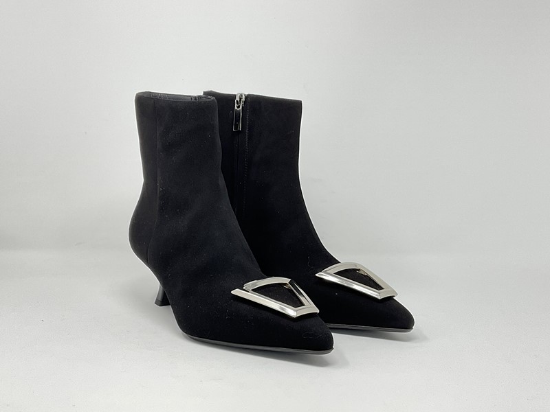 Tronchetto in camoscio con zip interna accessorio argento sul puntale Colore Nero H. tcco 5 cm. Made in Italy