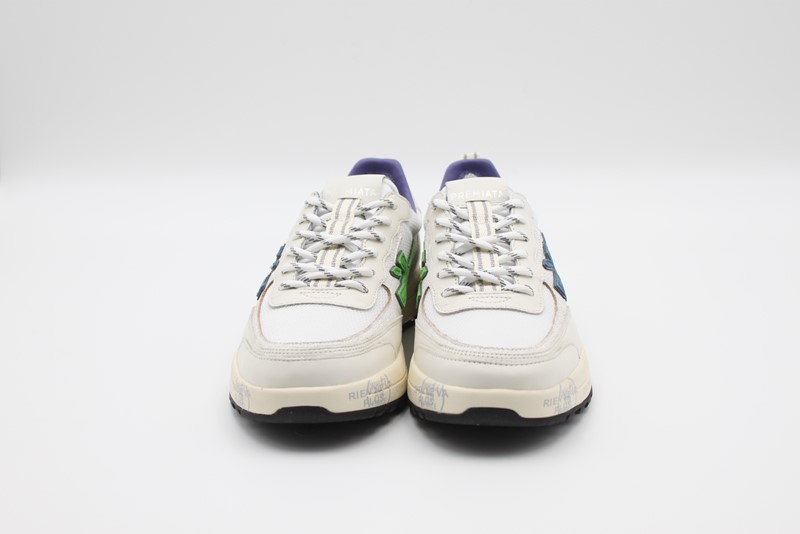 Dal perenne stato di ricerca, raffinatezza e innovazione di Premiata, nasce la nuova cassetta-running definita in un modello ordinato, efficace, incredibilmente performante dallo stile essenziale e tenace. Altezza suola 3,5 cm. Fusbet Interno 28,7 cm. La scarpa scattata è taglia 42. SOLE: 70% EVA 30% RUBBER UPPER: 15% TPU 60% PA 20% CALF LEATHER 5% PU LINING: 86% GOAT LEATHER 14% PA