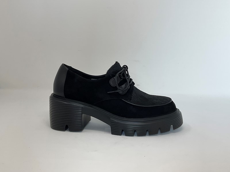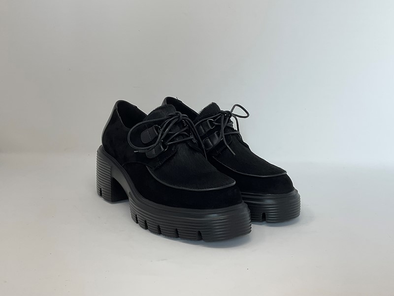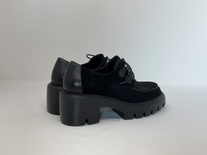 Derby in pelle e camoscio, fondo in para H. tacco 7 cm Colore Nero