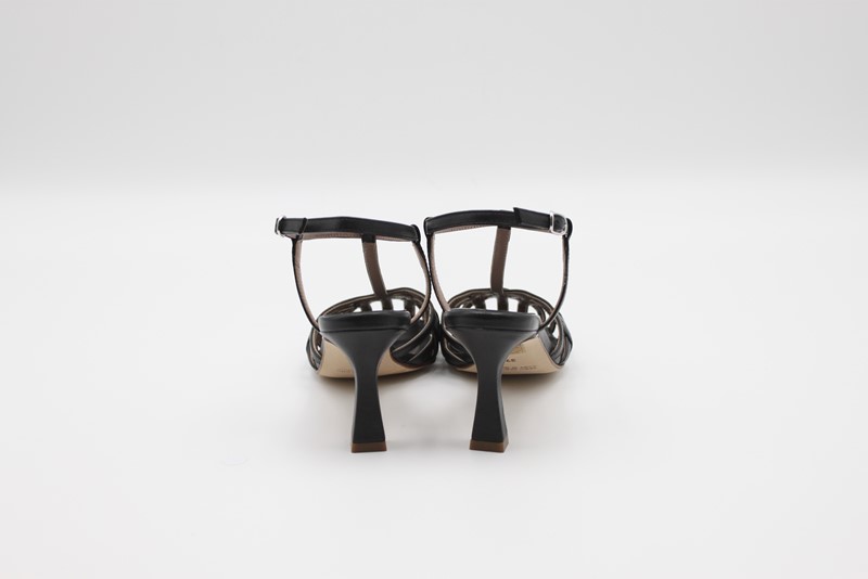 Sandalo in pelle con cinturino reolabile alla caviglia tomaia intrecciata. H. tacco 70 Colore Nero Made in Italy