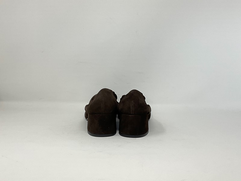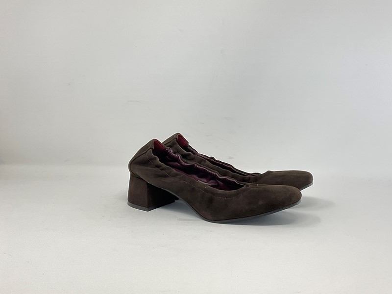 Decolletè in camoscio , con elastico sul tallone Tacco rivestito in camoscio H. tacco 5 cm. Colore Cioccolato Made in Italy