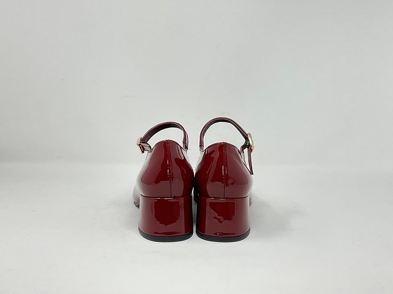 Bebe’ in vernice con cinturino Tacco rivestito in vernice H. tacco 4,5 cm. Colore Bordeaux Madein Italy
